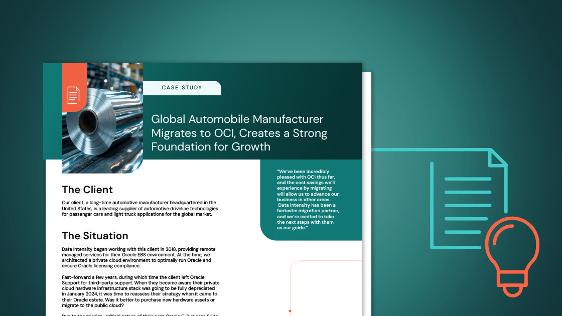 Learning that your tech stack is being depreciated is never ideal, but when that stack runs mission-critical E-Business Suite and Hyperion instances, there's no time to waste. This manufacturer reached out to Data Intensity for expert guidance.